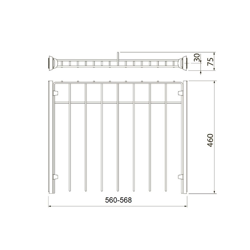 Ширина установки вешалки регулируется в диапазоне 560 - 568 мм.