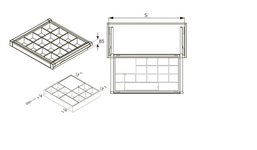 Корзина предназначена для модуля с шириной фасада 800 мм, вид монтажа направляющих - нижний (скрытый).