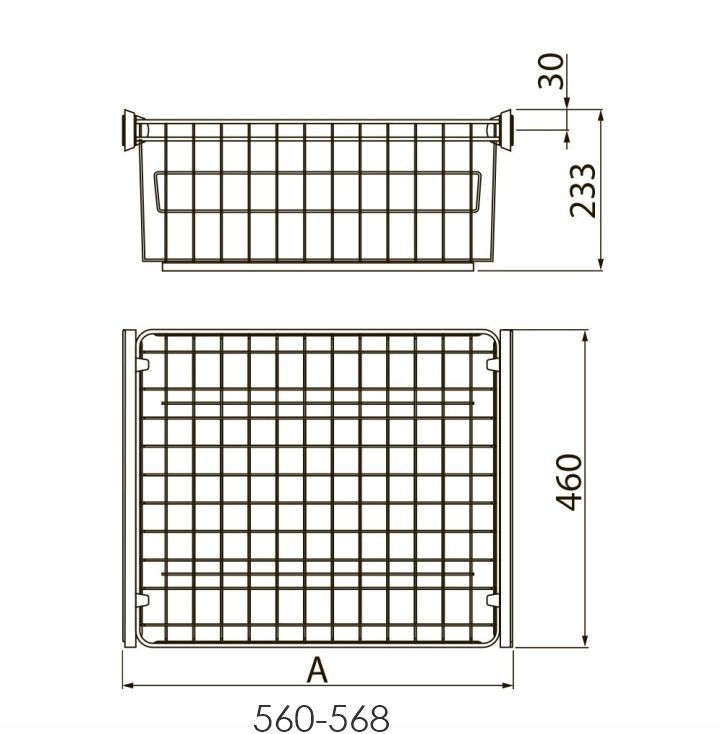 Ширина корзины при монтаже регулируется в диапазоне 560-568 мм.