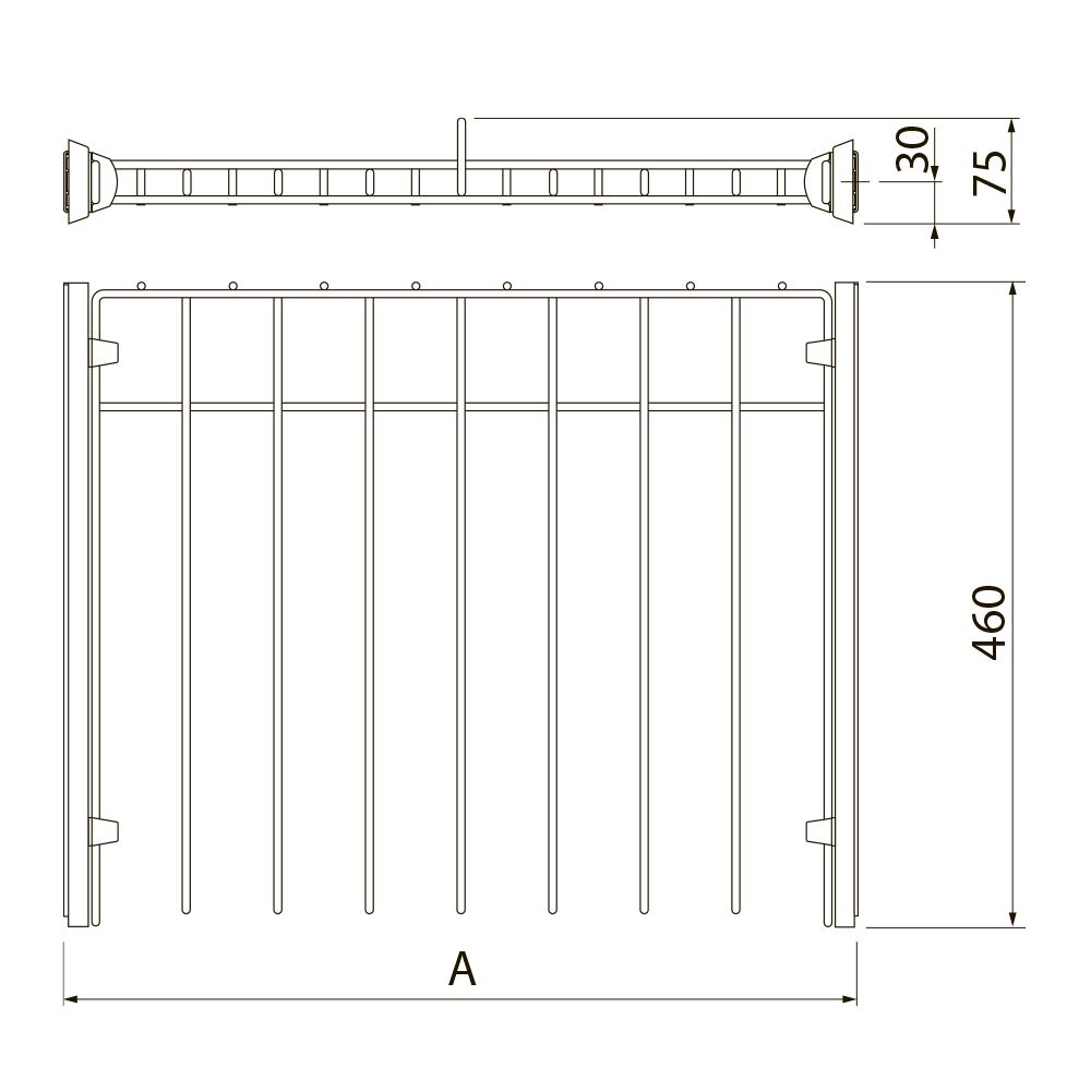 Ширина установки вешалки регулируется в диапазоне 560 - 568 мм.