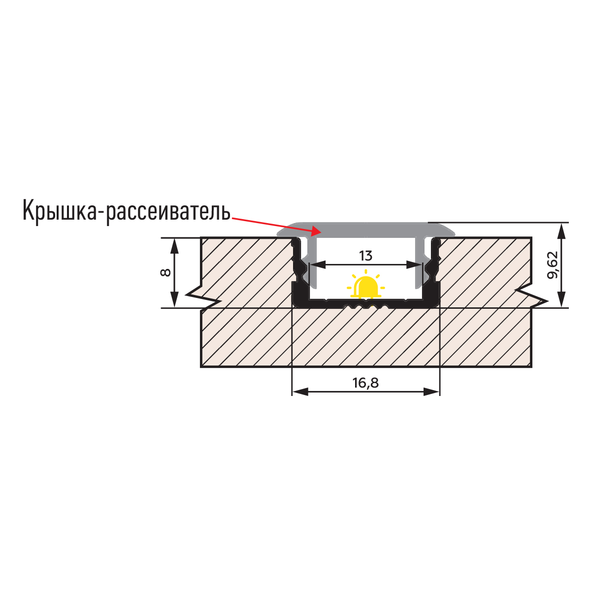Устанавливается в фрезерованный паз 7,5х16,5 мм в деталях корпуса ЛДСП (не менее 16 мм). Боковые выступы в конструкции профиля призваны скрывать возможные сколы и неровности пропила.