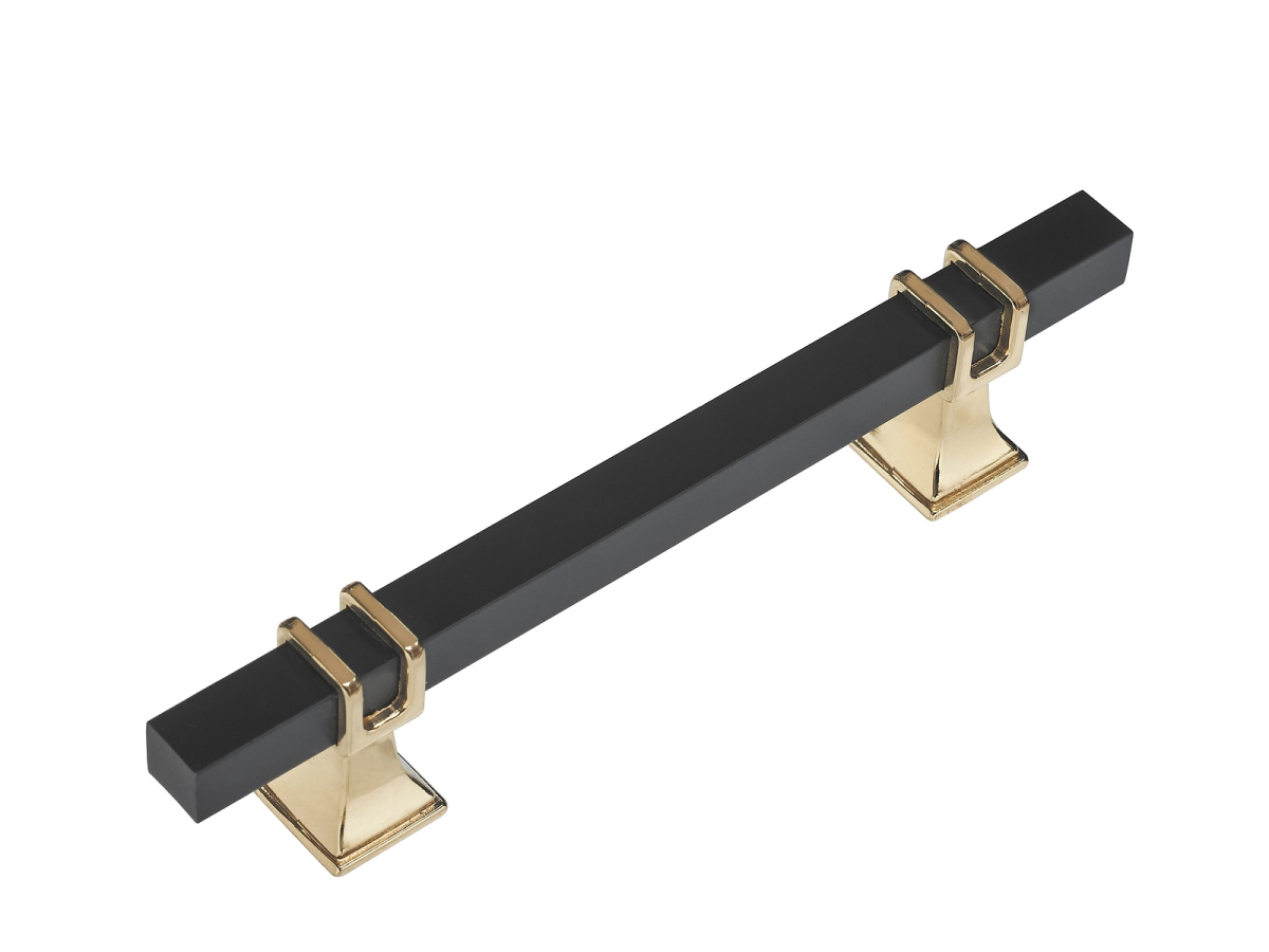 Ручка скоба FS 6005 128мм матовый черный/золото (TDM) купить в магазине мебельной фурнитуры https://rmkmasterium.ru/