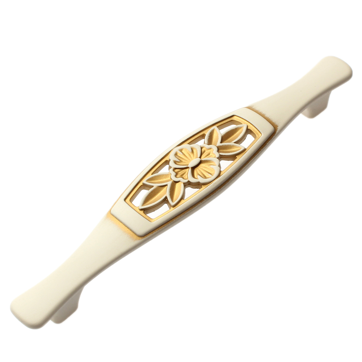 Ручка скоба FS-129 128мм. Золото прованс/1013 жемчужно-белый матовый (Т3) купить в магазине мебельной фурнитуры https://rmkmasterium.ru/