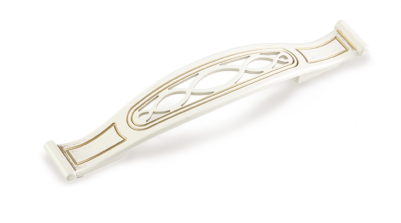 Ручка скоба FS-131 128мм. Золото прованс/1013 жемчужно-белый матовый (Т3) купить в магазине мебельной фурнитуры https://rmkmasterium.ru/