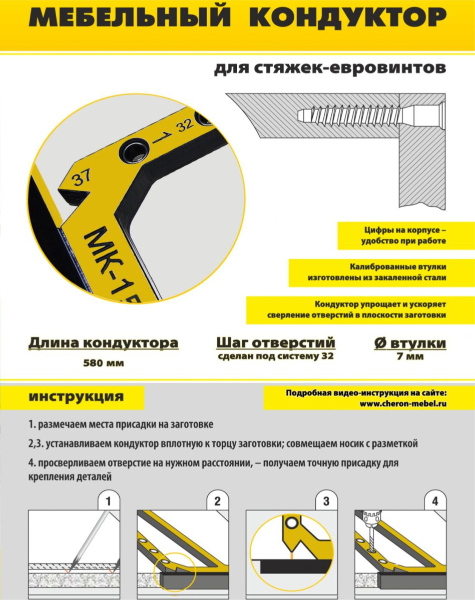Кондуктор применим для соединения плит на "евровинт"/"конфирмат".
