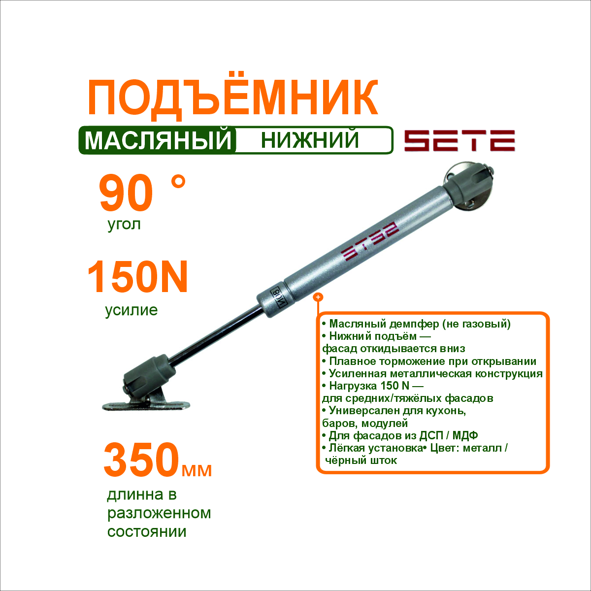 Усилие 150 N подходит для средних и тяжёлых фасадов, применяемых в барных модулях, кухонных шкафах и корпусной мебели. Подъёмник обеспечивает стабильную и долговечную работу, легко устанавливается и фиксируется на стандартные крепления.