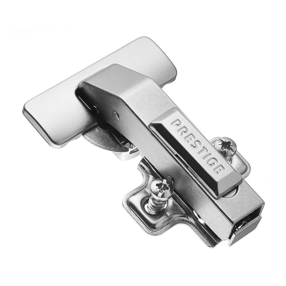 Регулировка выполняется по двум направлениям — по глубине и по боковому смещению, а высота корректируется через планку. Петля подходит для фасадов из ДСП, МДФ и массива, используется в кухонной и корпусной мебели.