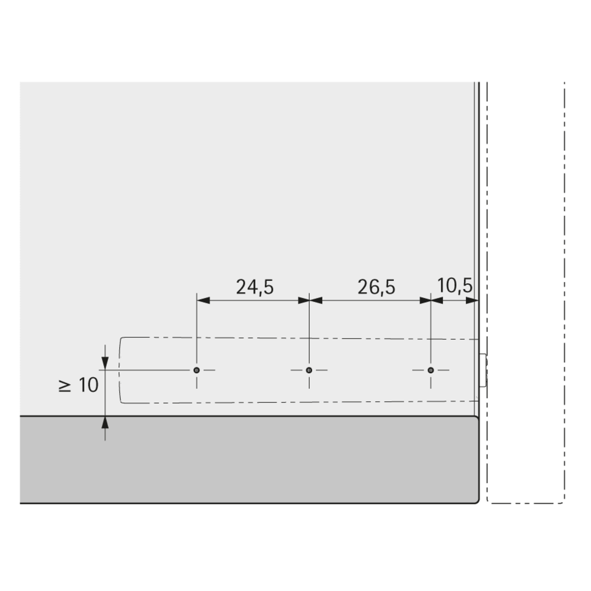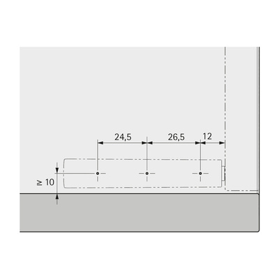 Подходит для использования со скрытыми мебельными петлями. Может применяться при накладной, вкладной навеске двери и при навеске на среднюю стенку.