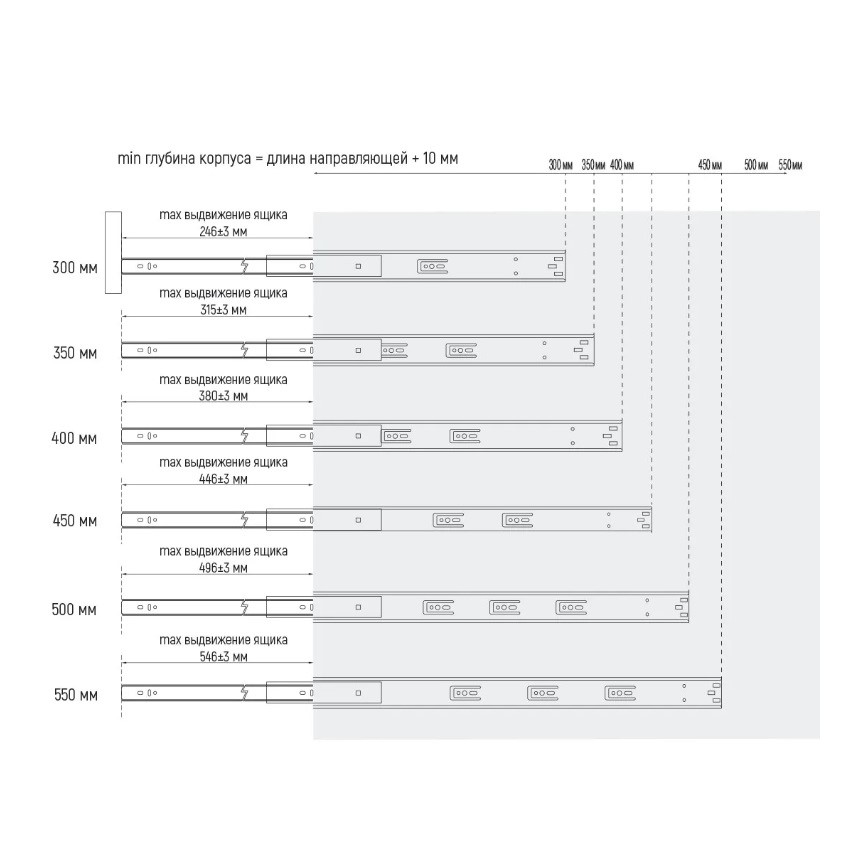 Шариковая направляющая PROFI, PUSH TO OPEN с доводчиком ,L500 сталь купить в магазине мебельной фурнитуры https://rmkmasterium.ru/