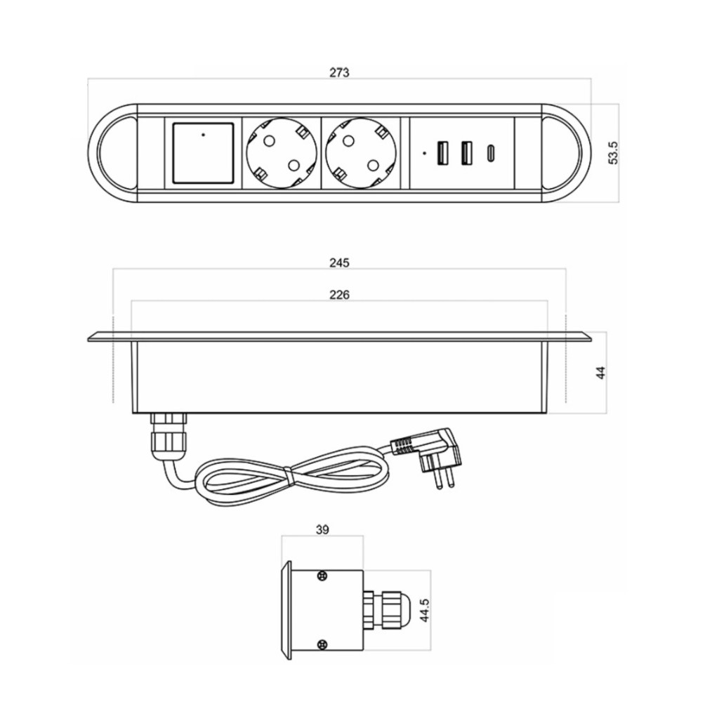 Размеры: 273х44х53,5 мм;