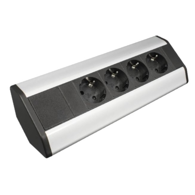 Выдвижной блок розеток угловой (4) Серебро (277х74х74мм) купить в магазине мебельной фурнитуры https://rmkmasterium.ru/