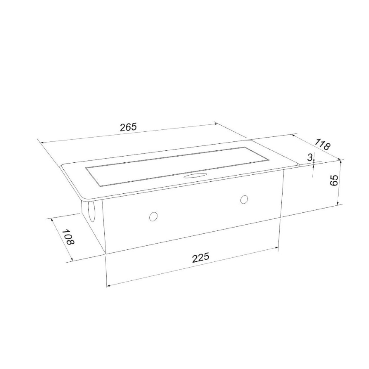 Установочный размер: 225х108 мм.